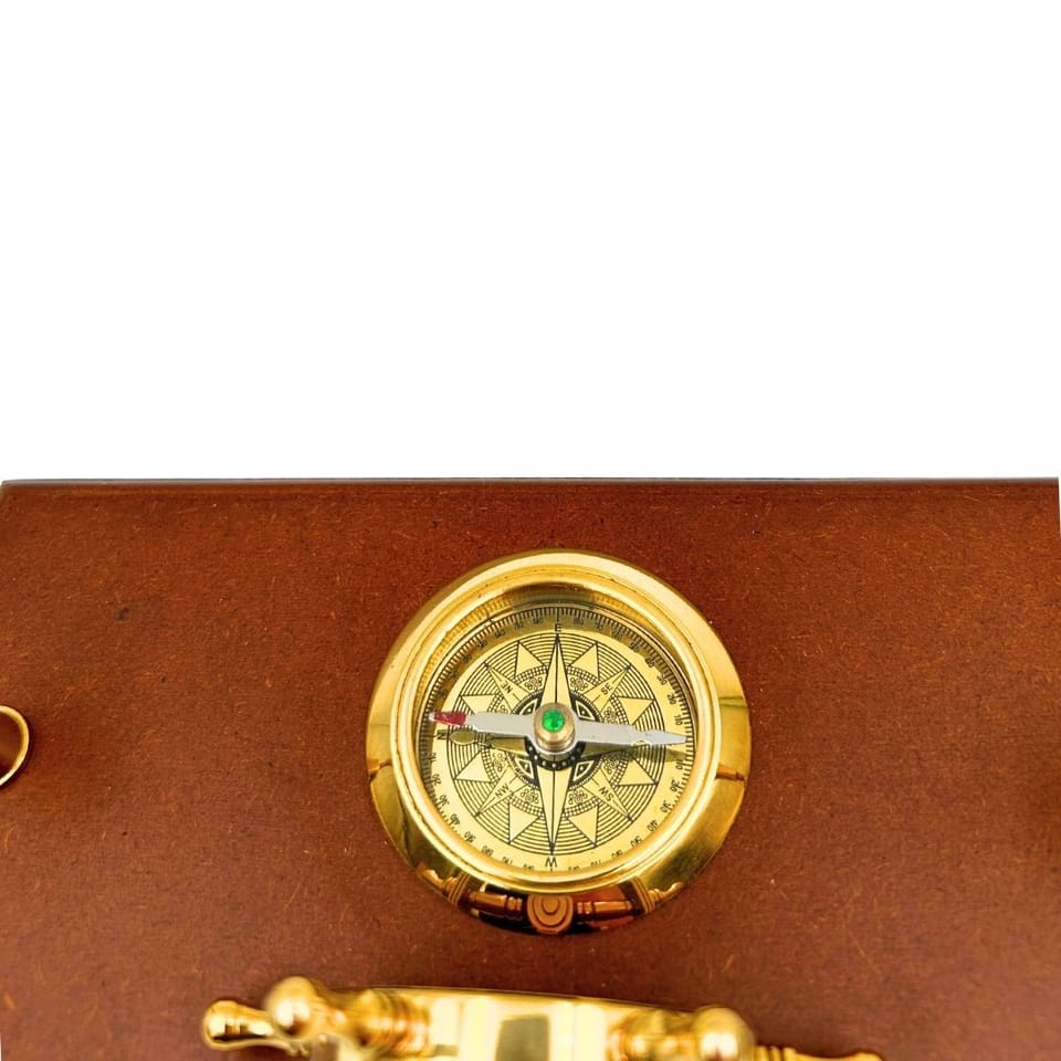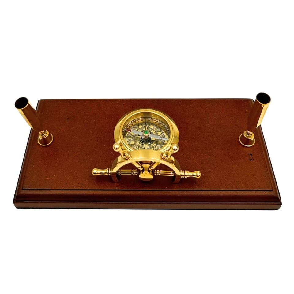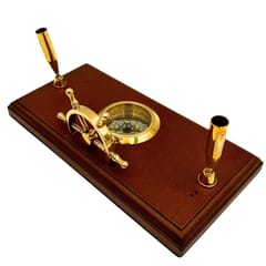 Marynistyczny Zestaw Biurkowy – Koło Sterowe, Kompas, Uchwyty na Długopisy – TT019