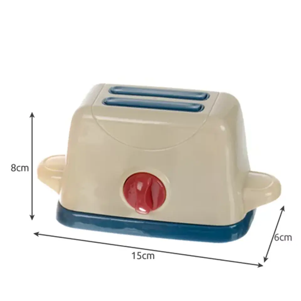 - TOSTER ? to mała replika prawdziwego tostera, stworzona specjalnie dla dzieci do zabawy. Jest to niezawodna, nieelektryczna zabawka, która naśladuje wygląd i funkcje prawdziwego tostera, jednak nie posiada ogrzewania, ale można odwzorować tosty z masy plastycznej.