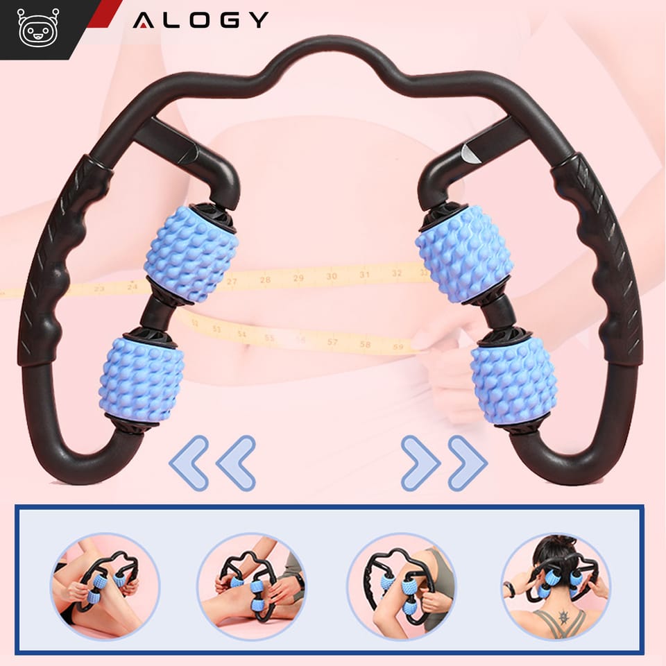 Masażer ręczny do ciała marki Alogy może być stosowany do różnych partii ciała m.in.: