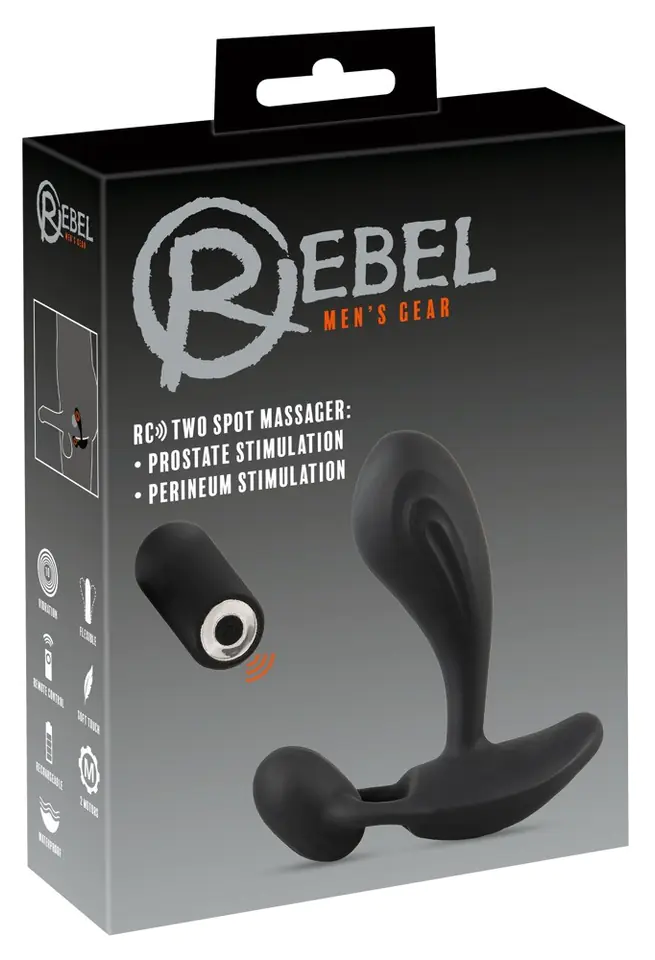 Bardzo elastyczny masażer prostaty sterowany za pomocą bezprzewodowego pilota. Duża końcówka z rowkami do stymulacji punktu P z szeroką, anatomicznie idealnie wyprofilowaną podstawą dla dodatkowej stymulacji krocza. Pokryty silikonem o jedwabiście miękkiej fakturze ułatwiającej wkładanie i zapewniającej wysoki komfort. 2 silniki zapewniają 10 zróżnicowanych trybów wibracji, którymi można wygodnie sterować za pomocą praktycznego pilota - o zasięgu do 10 m. Nawet w wannie lub pod prysznicem, ponieważ masażer jest wodoodporny. Ładowanie za pomocą dołączonego kabla USB. W komplecie bateria (CR2032) do pilota.Długość całkowita 11 cm, długość użytkowa 8,6 cm, Ø 1 cm - 3,2 cm.Waga 97 g. Silikon, PU, ABS.