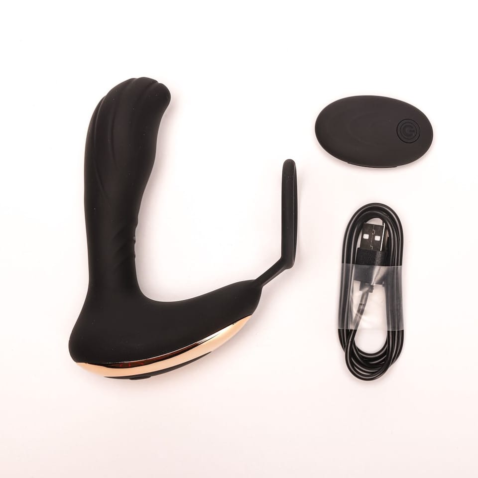 Masażer Prostaty Z Pierścieniem Zdalnie Sterowany Czarny