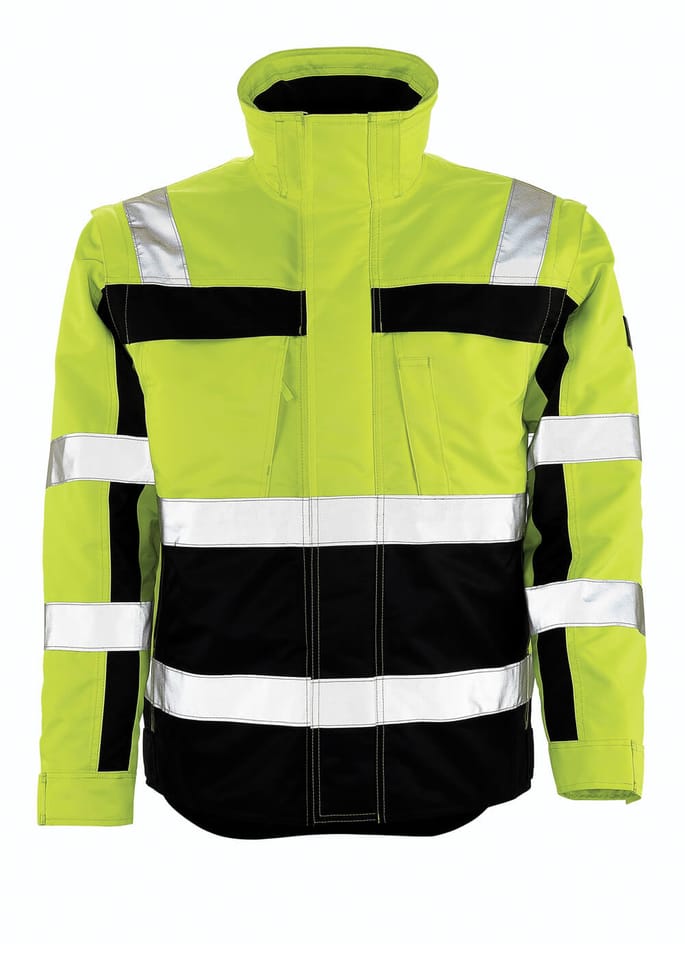 - Pikowana podszewka sama stanowi kurtkę, zgodnie z normą EN ISO 20471, kołnierz ze ściągaczem i odpinane rękawy