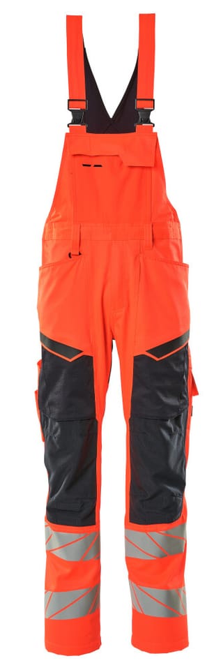 MASCOT® Ogrodniczki z kieszeniami na kolanach ACCELERATE SAFE kolor czerwień hi-vis/ciemny granat, rozmiar 82C46