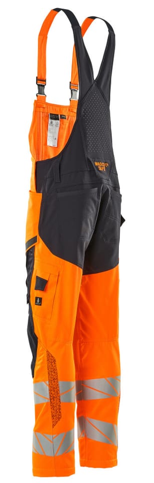 MASCOT® Ogrodniczki z kieszeniami na kolanach ACCELERATE SAFE kolor pomarańcz hi-vis/ciemny granat, rozmiar 82C56