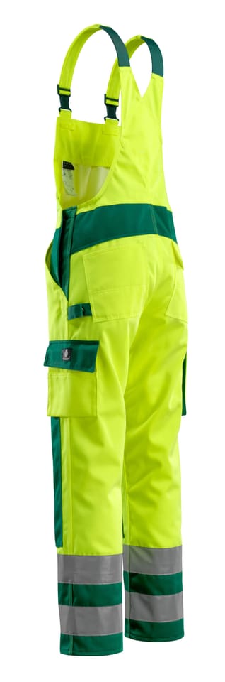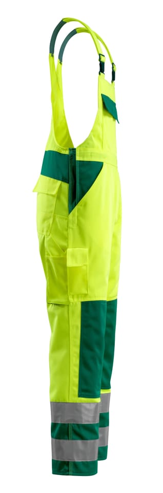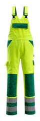 MASCOT® Ogrodniczki z kieszeniami na kolanach SAFE COMPETE kolor żółty hi-vis/zieleń, rozmiar 82C54