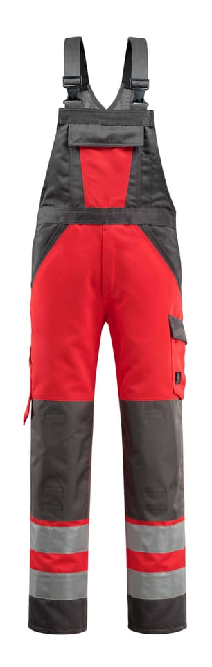 MASCOT® Ogrodniczki z kieszeniami na kolanach SAFE LIGHT kolor czerwień hi-vis/ciemny antracyt, rozmiar 82C48