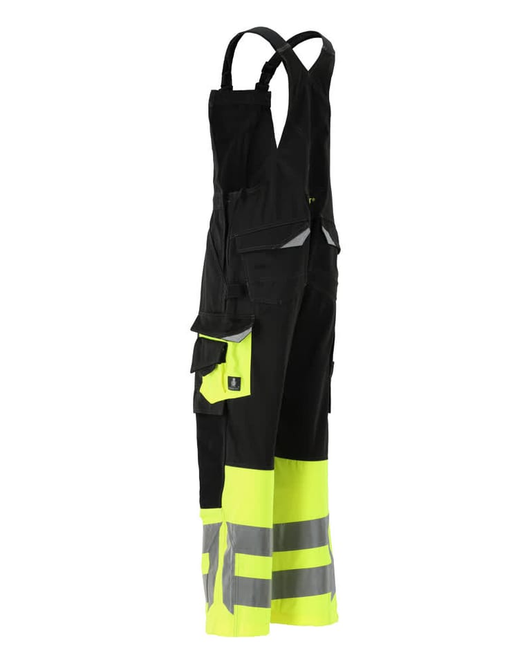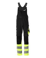 MASCOT® Ogrodniczki z kieszeniami na kolanach SAFE SUPREME kolor czerń/żółty hi-vis, rozmiar 82C50