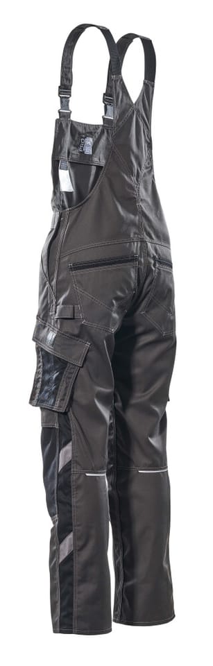 MASCOT® Ogrodniczki z kieszeniami na kolanach UNIQUE kolor ciemny antracyt/czerń, rozmiar 82C48