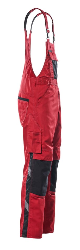 MASCOT® Ogrodniczki z kieszeniami na kolanach UNIQUE kolor czerwień/czerń, rozmiar 82C58