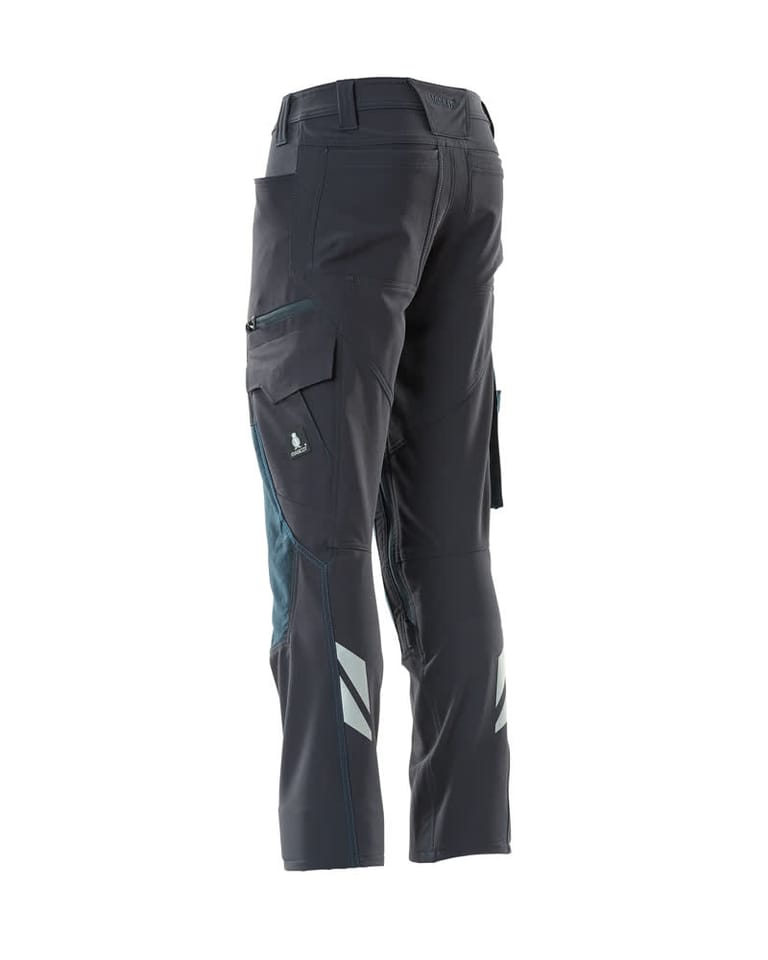 - Wykonane z trwałego materiału CORDURA® kieszenie na nakolanniki umożliwiają regulację i dobranie optymalnego położenia.