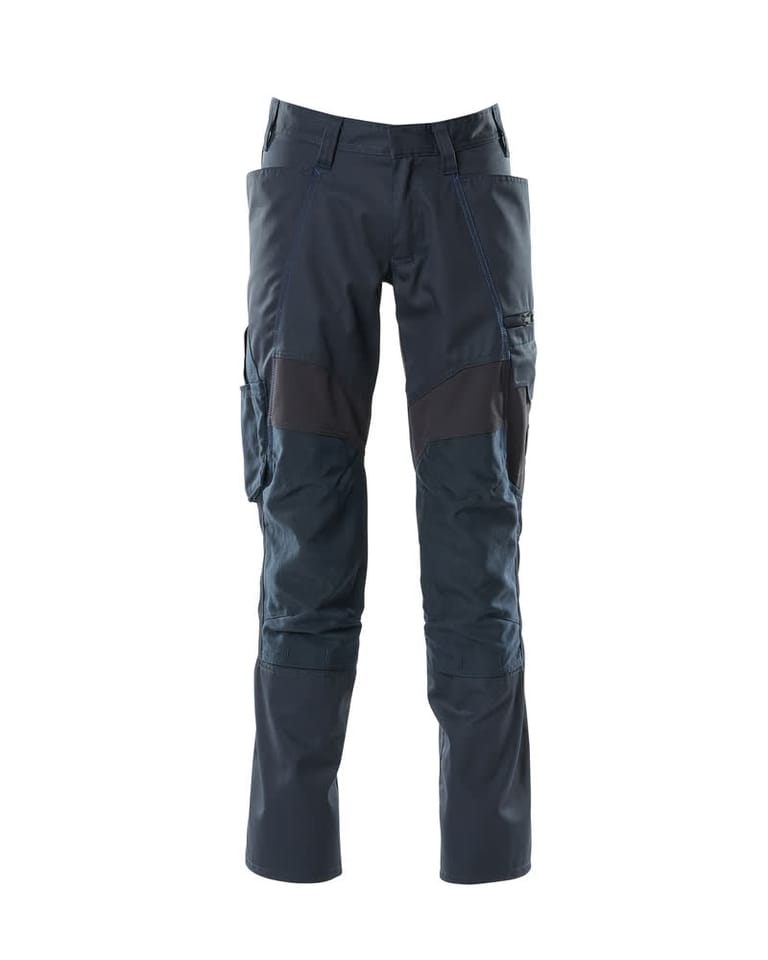 - Wykonane z trwałego materiału CORDURA® kieszenie na nakolanniki umożliwiają regulację i dobranie optymalnego położenia.