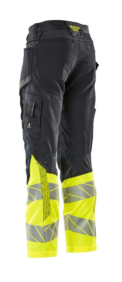 MASCOT® Spodnie z kieszeniami na kolanach ACCELERATE SAFE kolor ciemny granat/żółty hi-vis, rozmiar 76C48