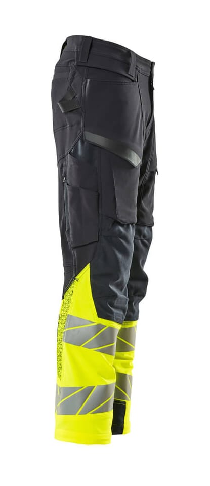 MASCOT® Spodnie z kieszeniami na kolanach ACCELERATE SAFE kolor ciemny granat/żółty hi-vis, rozmiar 82C45