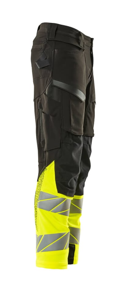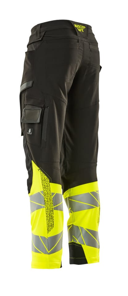 MASCOT® Spodnie z kieszeniami na kolanach ACCELERATE SAFE kolor czerń/żółty hi-vis, rozmiar 76C47