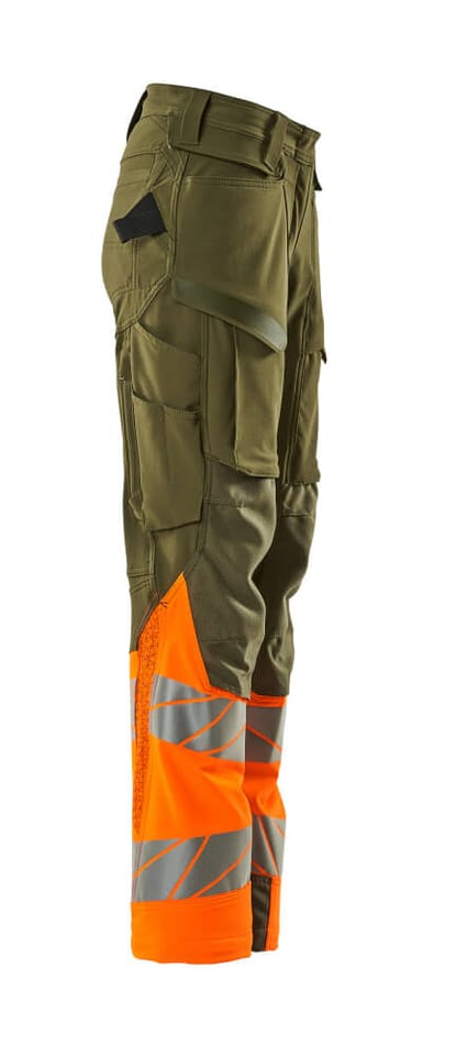 - Wykonane z trwałego materiału CORDURA® kieszenie na nakolanniki umożliwiają regulację i dobranie optymalnego położenia.