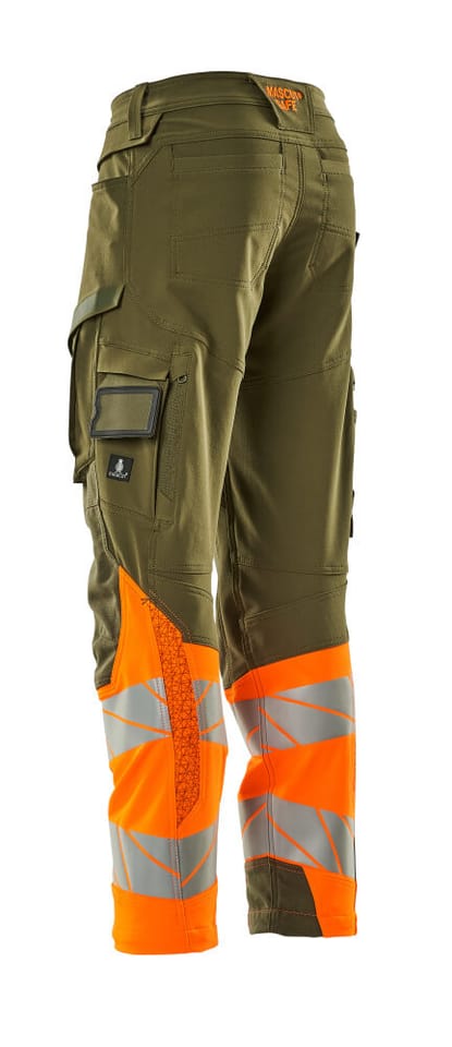 MASCOT® Spodnie z kieszeniami na kolanach ACCELERATE SAFE kolor zielony mech/pomarańcz hi-vis, rozmiar 76C54