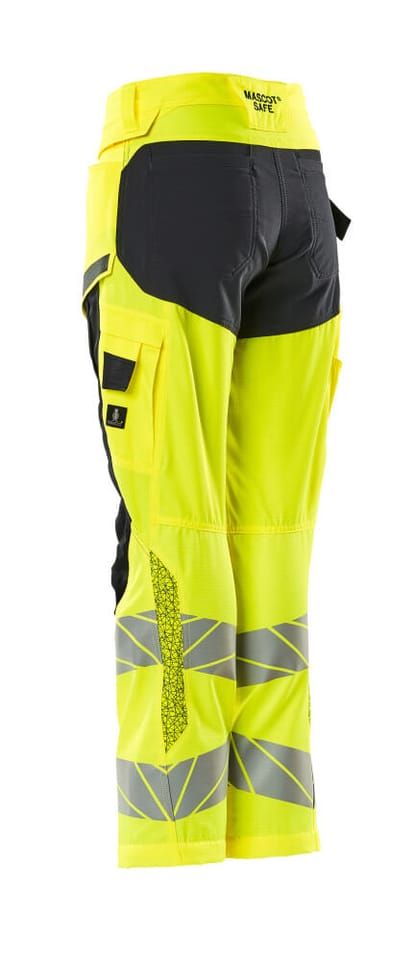 - Certyfikowane do użytku z wkładkami ochronnymi MASCOT typu SHORT lub LONG (wysokość kieszeni na kolanach jest regulowana).