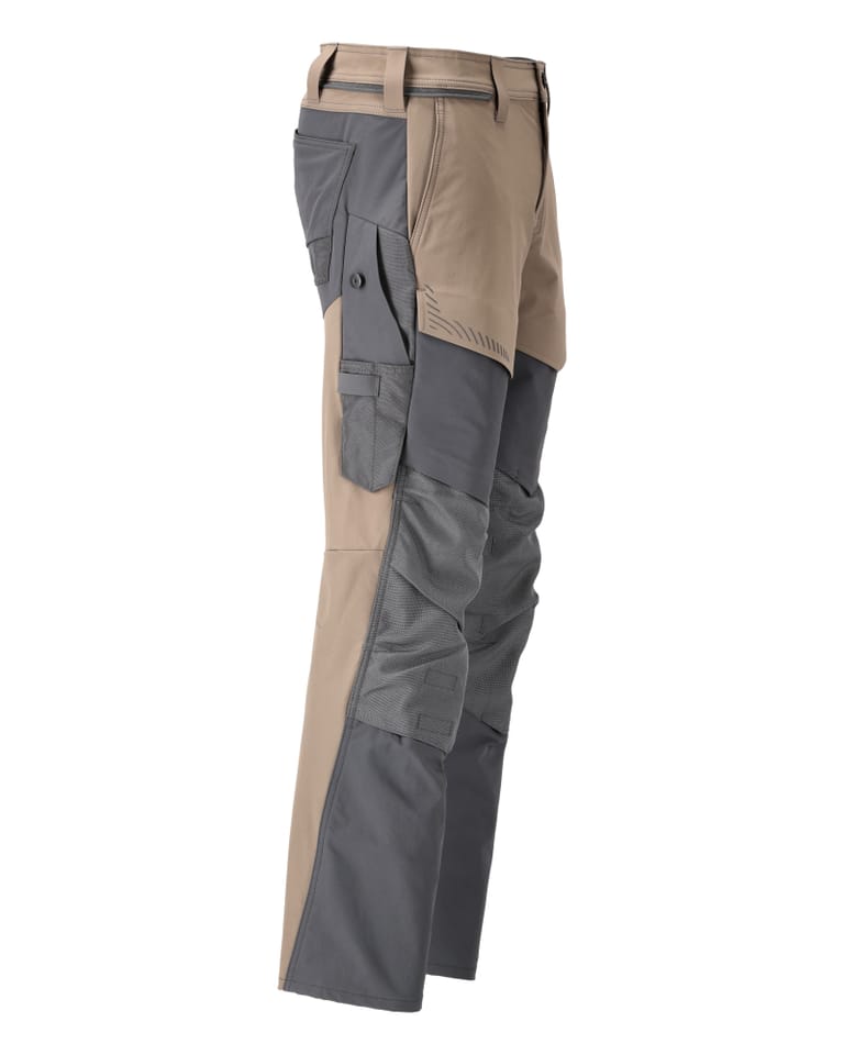 MASCOT® Spodnie z kieszeniami na kolanach CUSTOMIZED kolor ciemny piasek/kamienna szarość, rozmiar 82C56