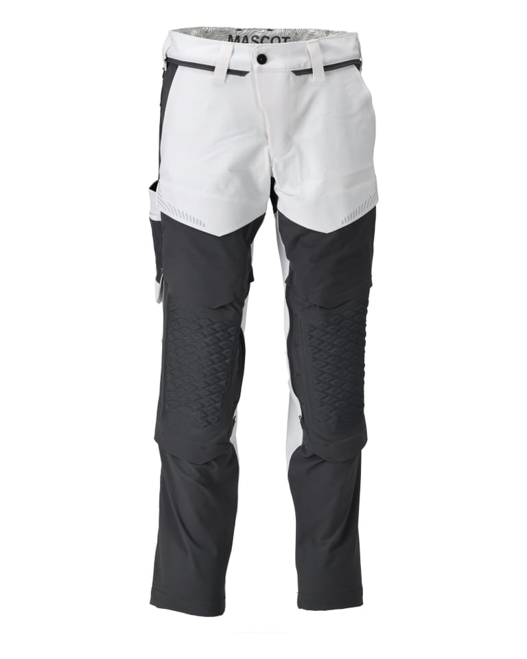 MASCOT® Spodnie z kieszeniami na kolanach, malarz CUSTOMIZED kolor biel/kamienna szarość, rozmiar 90C56