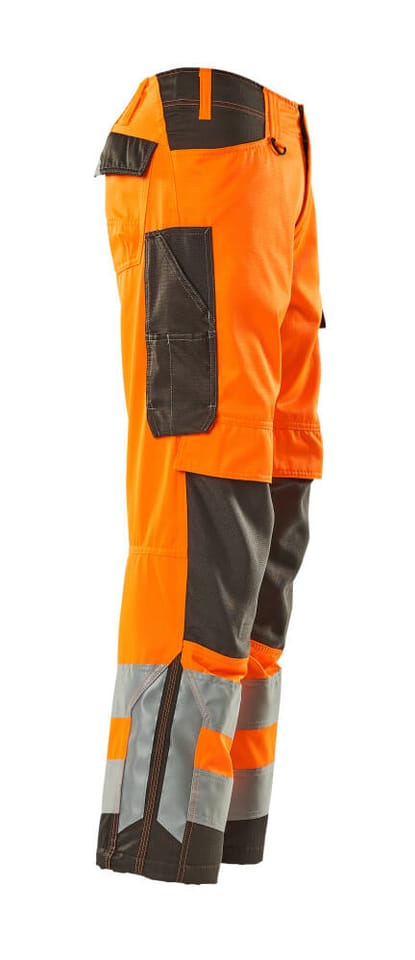- Kieszenie na kolanach wzmocnione tkaniną CORDURA® z wejściem od góry na nakolanniki, z zapięciem na rzepy po zewnętrznej stronie klapki, co zapobiega zaczepianiu się joysticków itp.