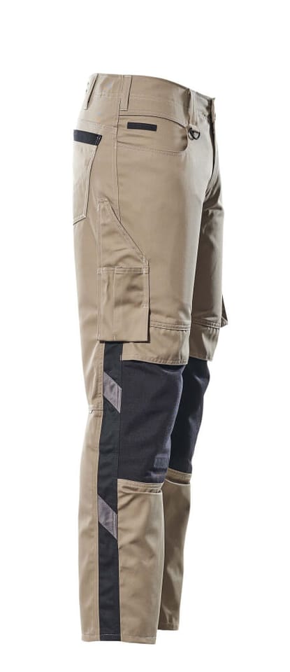 MASCOT® Spodnie z kieszeniami na kolanach UNIQUE kolor jasny khaki/czerń, rozmiar 90C58