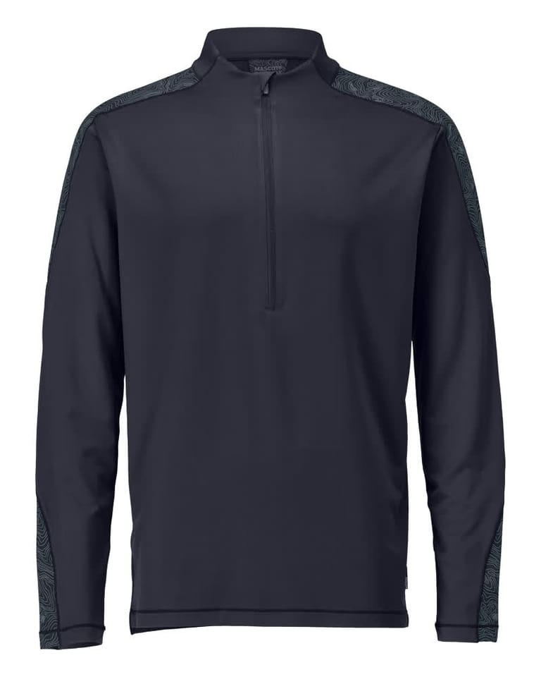 MASCOT® T-Shirt z długimi rękawami, z krótkim zamkiem błyskawicznym CUSTOMIZED kolor ciemny granat, rozmiar XS