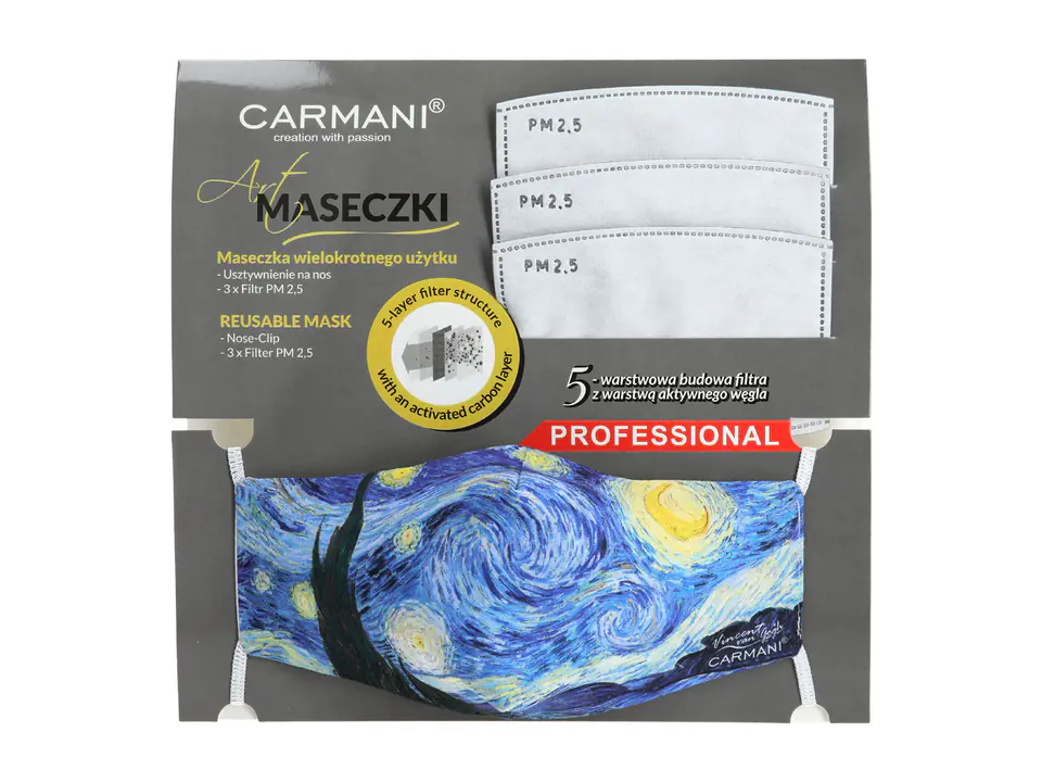 Maseczka ochronna z filtrem - V. van Gogh, Gwiaździsta Noc CARMANI
