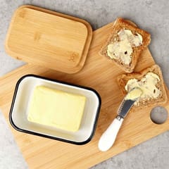 - Zamykana pokrywka chroniąca świeżość - Wyposażona w bambusową pokrywkę, która umożliwia zamknięcie maselniczki. Pozwala zachować świeżość i zalety smakowe masła, a jednocześnie chroni je przed zepsuciem.