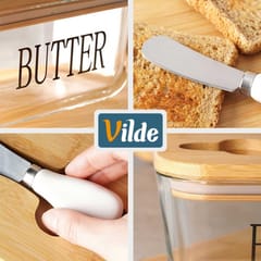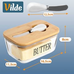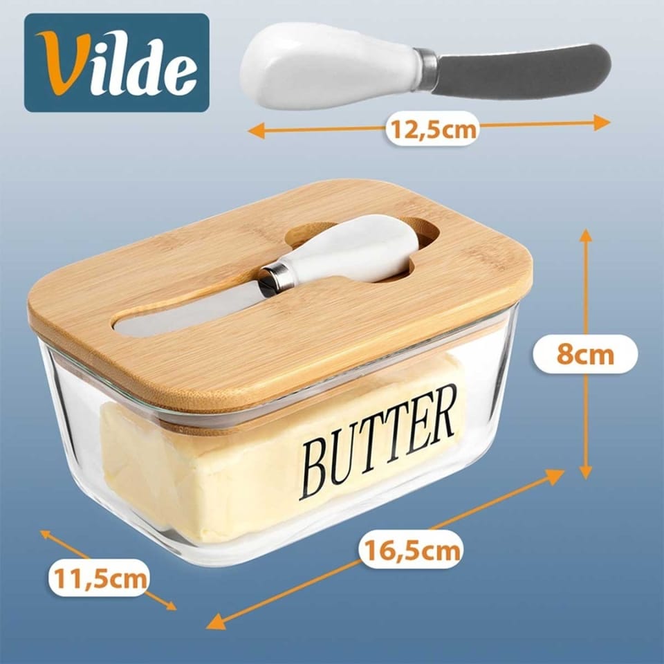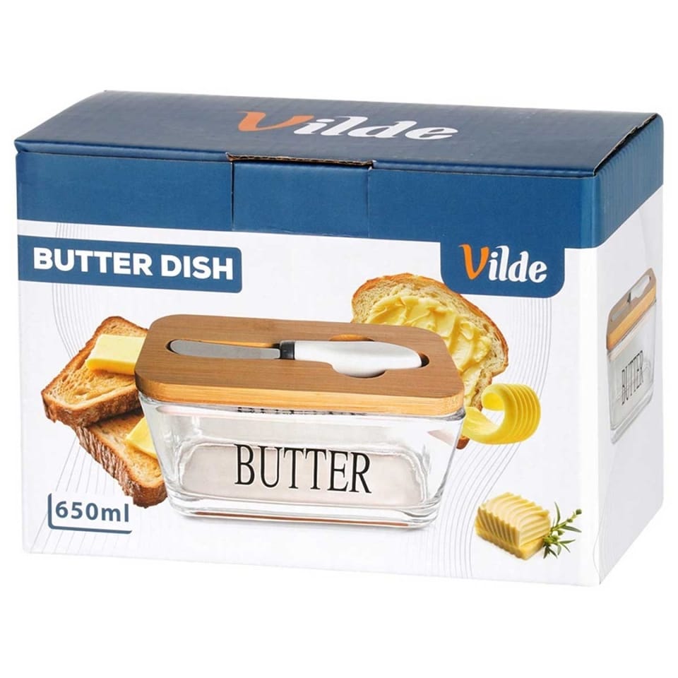 Przydatna maselniczka w zestawie z nożykiem, która sprawdzi się do przechowywania oraz serwowania masła. Posiada praktyczne przykrycie. Wykonana z materiałów bezpiecznych dla zdrowia i neutralnych dla żywności. Klasyczny wzór sprawi, że będzie pięknie prezentować się z każdą zastawą stołową. Przydatna w każdym domu. Oryginalny produkt marki Vilde. Wyprodukowano zgodnie z europejskimi standardami.
