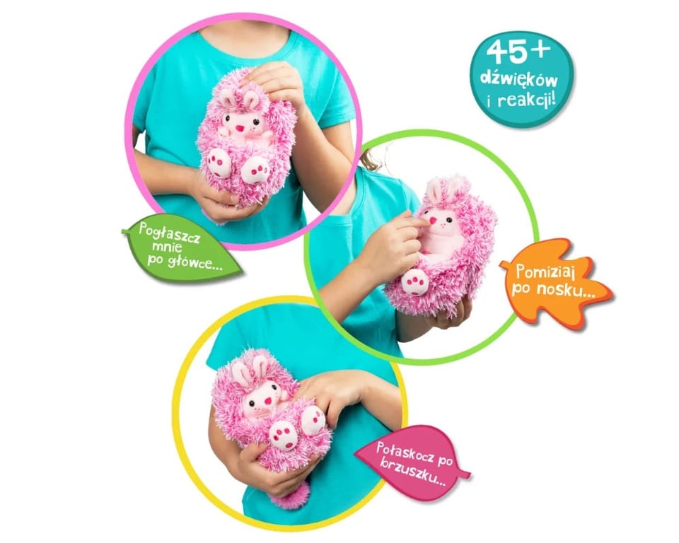 Kulisie to przesłodkie interaktywne pluszowe zwierzątka, które zwijają się w kłębek, gdy je połaskoczesz. Reagują na dotyk, posiadają 3 punkty aktywujące, oferują ponad 45 reakcji i dźwięków: odgłosy całowania i spania, śmieją się i kichają. Mają mięciutkie, kolorowe futerko.