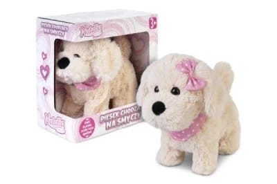 Piesek posiada różne funkcje: chodzi, szczeka, merda ogonkiem.