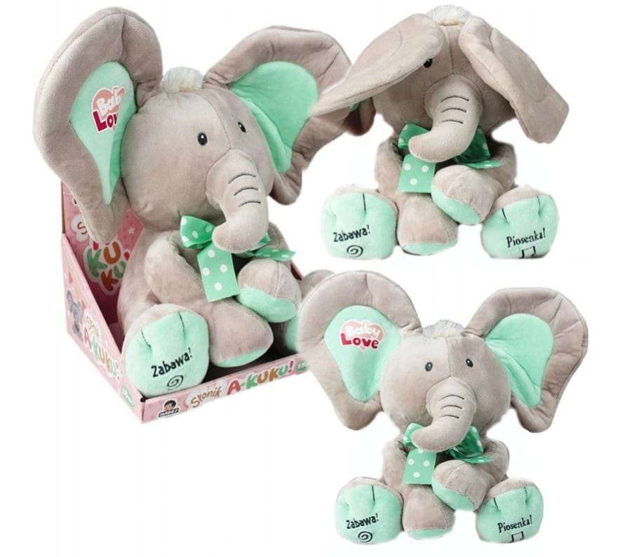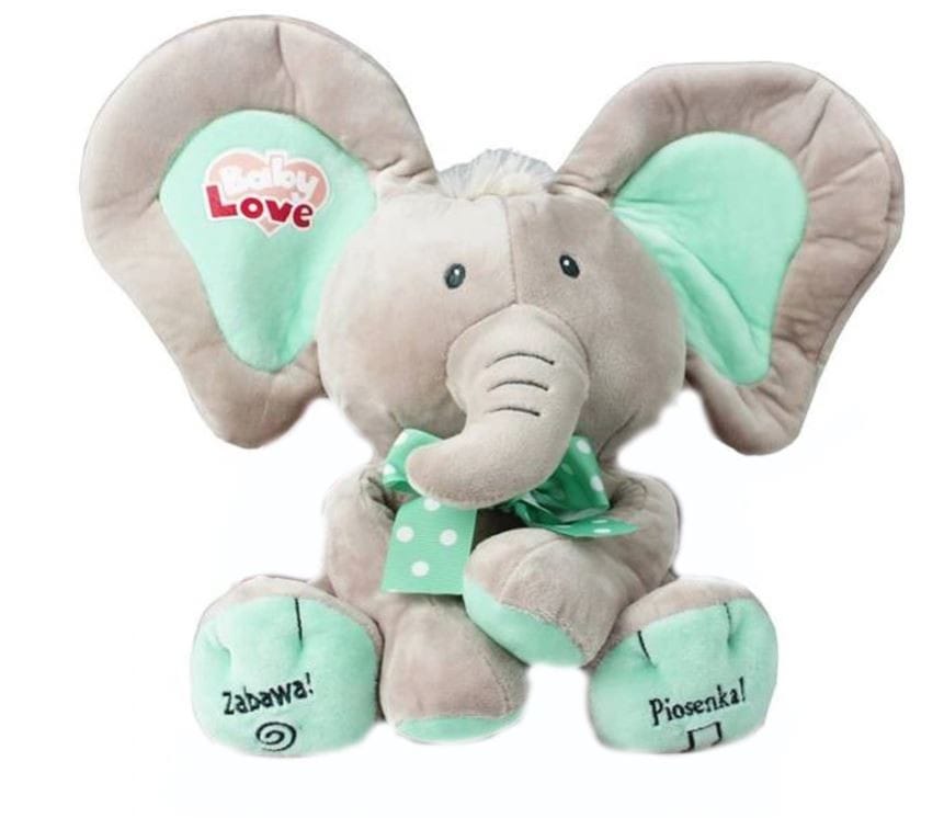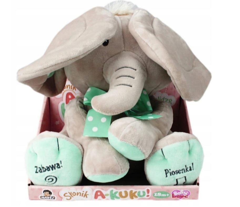 Jeśli naciśniemy stópkę słonika, zacznie on zakrywać oczka uszami i zapraszać do zabawy takimi zdaniami jak: "Cześć jestem Słoń pobaw się ze mną w chowanego", czy chociażby "Chowasz się, gdzie jesteś? Aha, mam Cię". Trzeba przyznać, że zabawa w chowanego jest ulubioną rozrywką dzieci na całym świecie, więc nic dziwnego, że słonik dostarczy ogromną ilość rozrywki do Waszego domu!