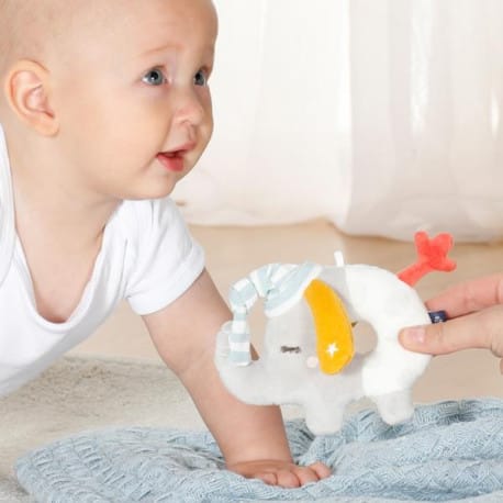 Maskotka z Grzechotką świecąca w ciemności, Słoń z Maskotka z Grzechotką świecąca w ciemności, Słoń z Kolekcji: Dobranoc. Słoń z Kolekcji: Dobranoc, to urocza edukacyjna maskotka, która będzie z dzieckiem przez cały czas. W dzień przytulny słoń i zintegrowana z nim grzechotka zachęci do zabawy, pobudzi zmysły dotyku, wzroku i słuchu, rozwinie umiejętności motoryczne i sprawi, że serce małego odkrywcy zacznie bić szybciej, Nocą zaś ukoi, wyciszy i pomoże zasnąć maluszkowi. Maskotka wykonana jest z wyjątkowo miękkiego oraz delikatnego dla skóry dziecka materiału. Specjalne nici fluorescencyjne, które wpleciono w elementy zabawki, świecą w ciemności, czyniąc noc mniej straszną i bezpieczniejszą. Milutki Słoń szybko staje się wiernym towarzyszem w domu i w podróży, zawsze zapewniając dobry nastrój!Funkcje: Edukacyjna maskotka / grzechotka: zachęca do zabawy, rozwija koncentrację i małą motorykę. Przytulanka: uspokaja, wycisza, pomaga zasnąć. Pobudza wyobraźnię, rozwija zmysły wzroku i słuchu. Różnorodne faktury materiału stymulują dotyk.Szczegółowe informacje o produkcie: Przytulna grzechotka Mały Słoń. Możliwość prania w pralce w 30C. Materiał wierzchni: aksamit, dżersej, nici fluorescencyjne świecące w ciemności (po wcześniejszej ekspozycji na światło dzienne lub sztuczne). Wypełnienie: 100% poliester. Wielkość maskotki: 14 cm x 10 cm x 4 cm. Idealny prezent dla niemowląt i małych dzieci. Wszystkie zabawki niemieckiej marki FEHN są bezpieczne dla dzieci od 0 lat. Wykonane są z najlepszej jakości materiałów. Spełniają normy EN71, CE. Są testowane pod kątem bezpieczeństwa przez niezależne instytuty badawcze. 53111