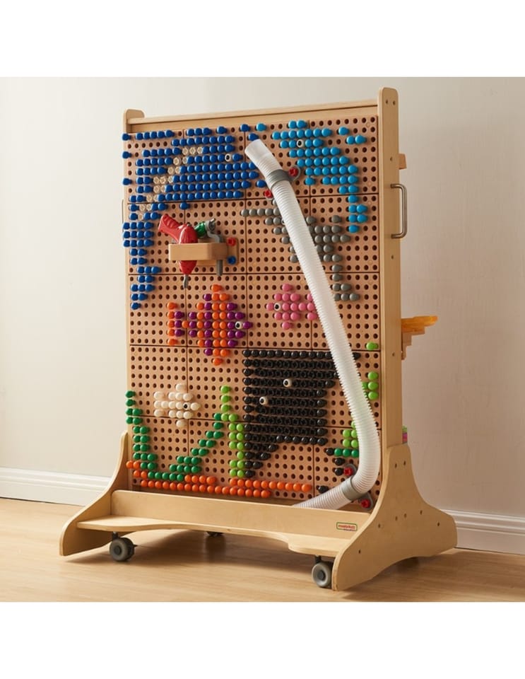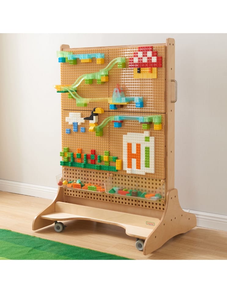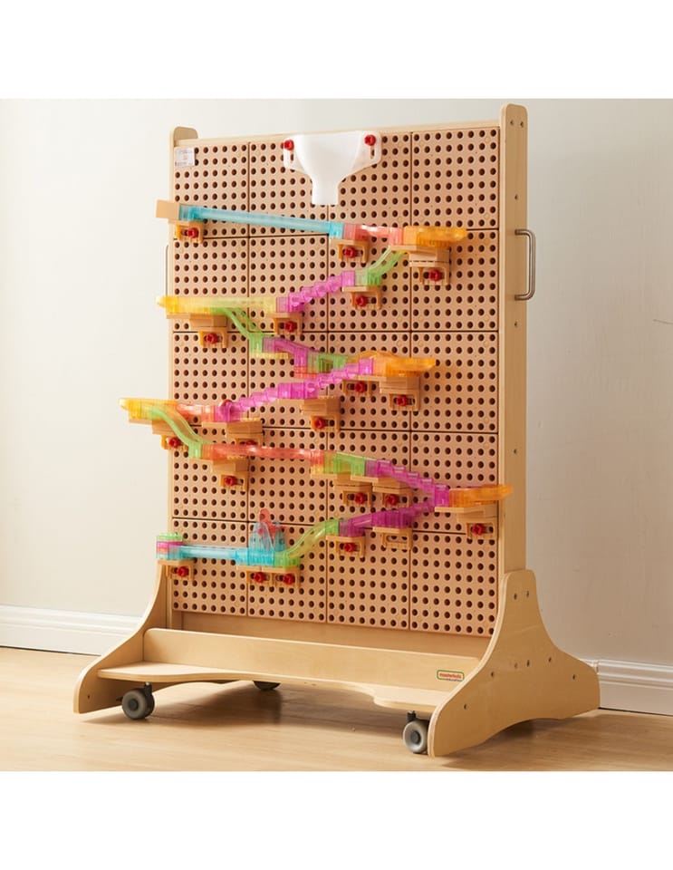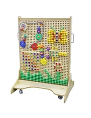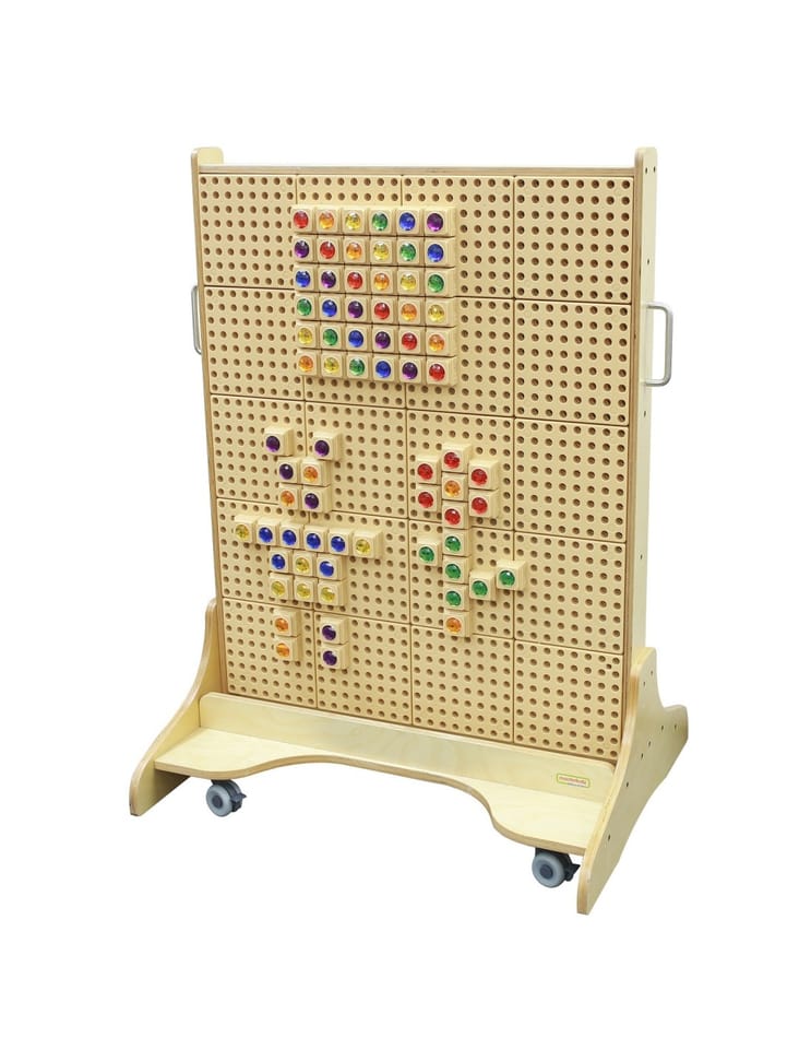 - Wolnostojąca konstrukcja zapewnia maksymalną elastyczność – tablicę można przenosić i ustawiać w dowolnym miejscu- Przestrzeń do swobodnego tworzenia wzorów, torów kulkowych, układów zębatkowych i innych konstrukcji- Dwustronna konstrukcja pozwala na zabawę w grupie- Mobilna podstawa na kółkach ułatwia przemieszczanie tablicy- Kompatybilna ze wszystkimi akcesoriami do tablic STEM: koła zębate, koła, koła pasowe, śruby, kołki i inne