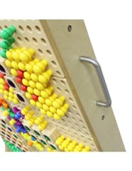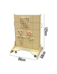 Tablica manipulacyjna STEM to wielofunkcyjna, mobilna tablica aktywności przeznaczona do edukacji i zabawy dla dzieci. Składa się z solidnej, drewnianej konstrukcji z perforowanymi panelami, które umożliwiają łatwe mocowanie różnorodnych elementów edukacyjnych i manipulacyjnych.