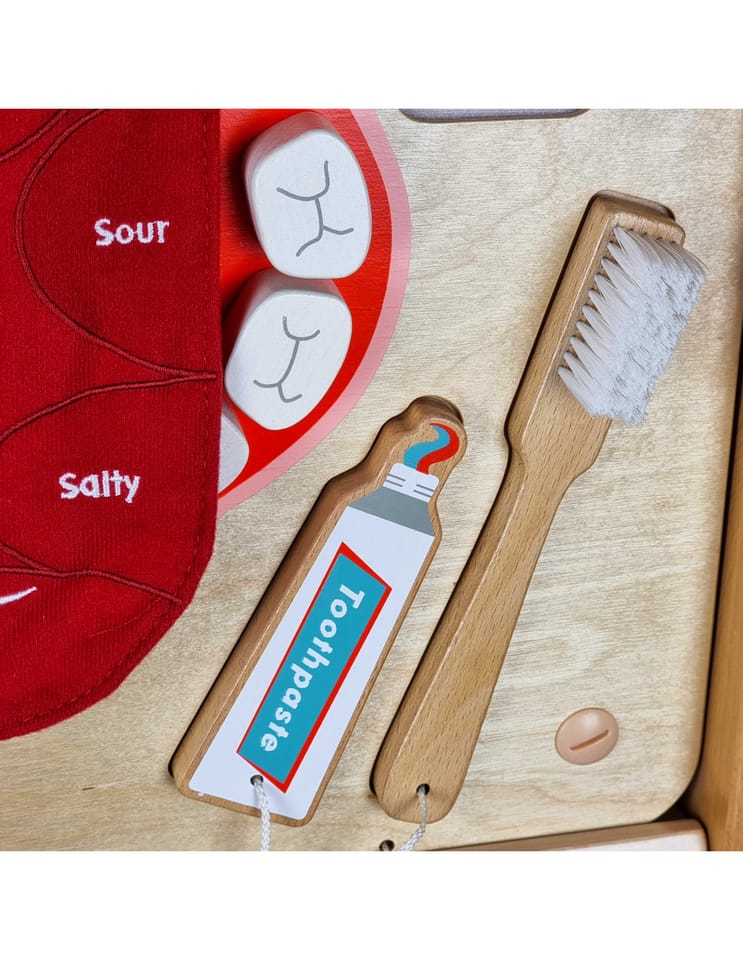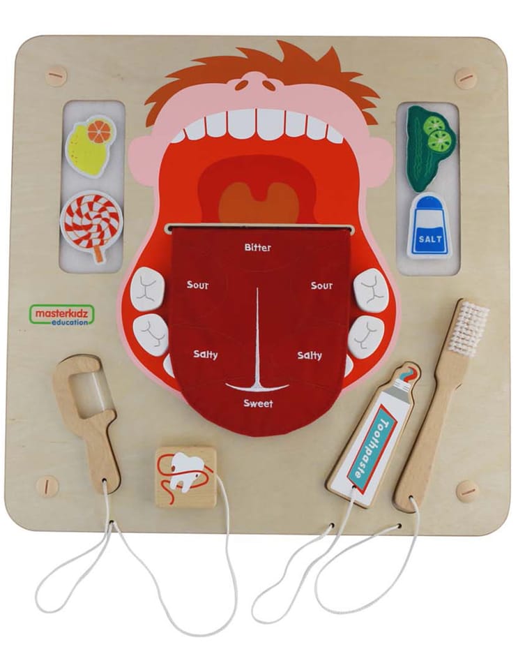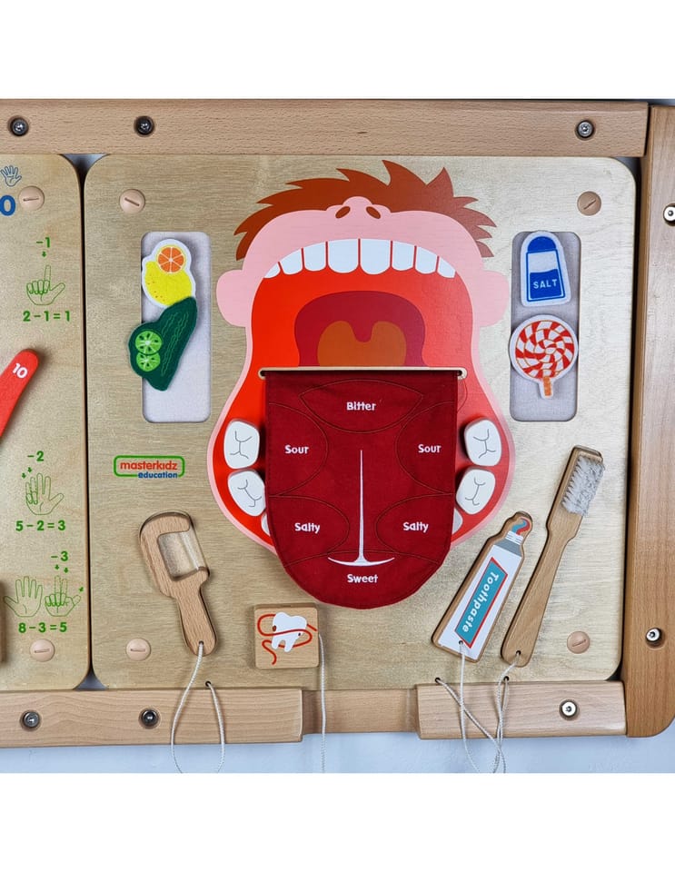 Tablica ścienna Higiena Jamy Ustnej kształtuje podstawowe czynności życiowe. Uczy dzieci jak prawidłowo myć i dbać o uzębienie. Jest to bardzo ważny etap w rozwoju każdego dziecka. Tablica umożliwia naukę nie tylko prawidłowego szczotkowania, ale również rozpoznawanie smaków takich jak: kwaśny, gorzki, słodki i słony.