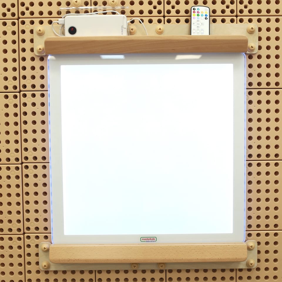 Komplet dwóch solidnych uchwytów montażowych, przeznaczonych do bezpiecznego i stabilnego mocowania paneli świetlnych marki Masterkidz na ścianie lub na tablicach manipulacyjnych STEM. Uchwyt wykonany jest z wysokiej jakości drewna, co zapewnia trwałość oraz estetyczny wygląd, idealnie komponujący się z nowoczesnymi przestrzeniami edukacyjnymi i terapeutycznymi.
