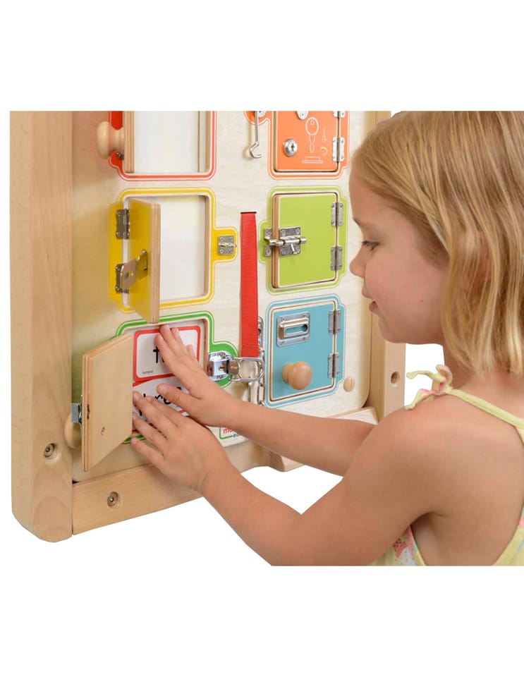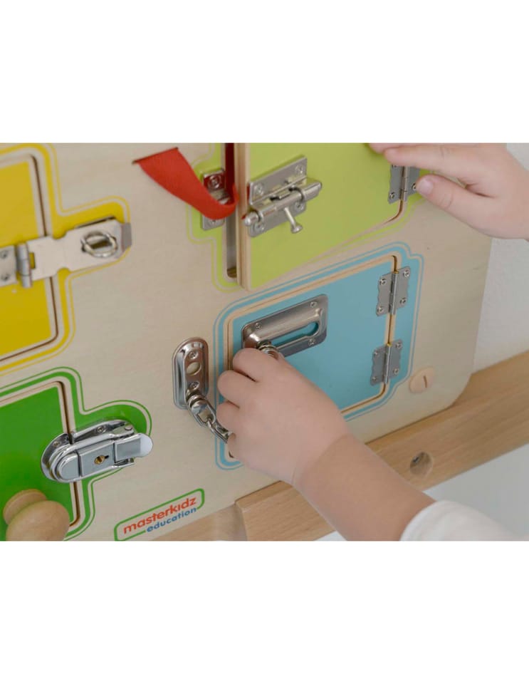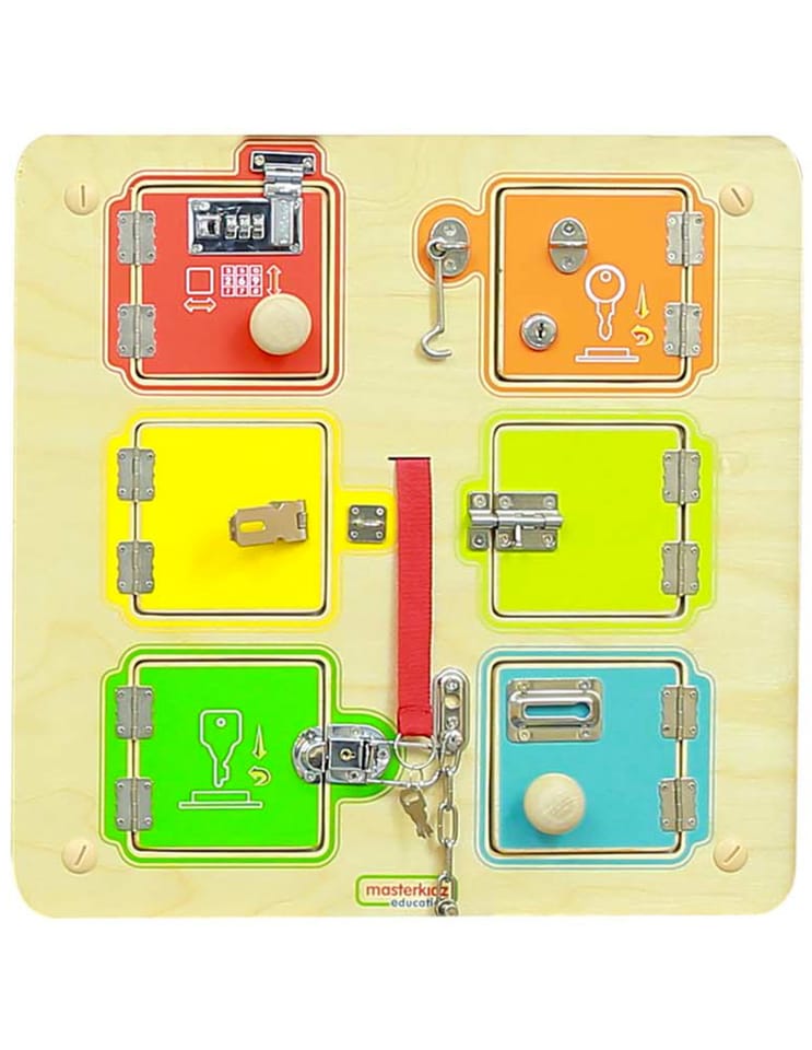 Otwieranie i zamykanie zamków to nie łatwe zadanie dla Twojego dziecka! Dlatego fantastyczna tablica ścienna marki Masterkidz jest gotowym rozwiązaniem do zdobywania tej umiejętności. Tablica składa się z drewnianej płyty oraz 6 mini-sejfów, na których można ćwiczyć. Niektóre z nich Twoje dziecko otworzy bez problemu, z kolei inne będą stanowić duże wyzwanie. Jest to jedna z zabawek, która nie pozwala odejść dziecku dopóki nie osiągnie celu.