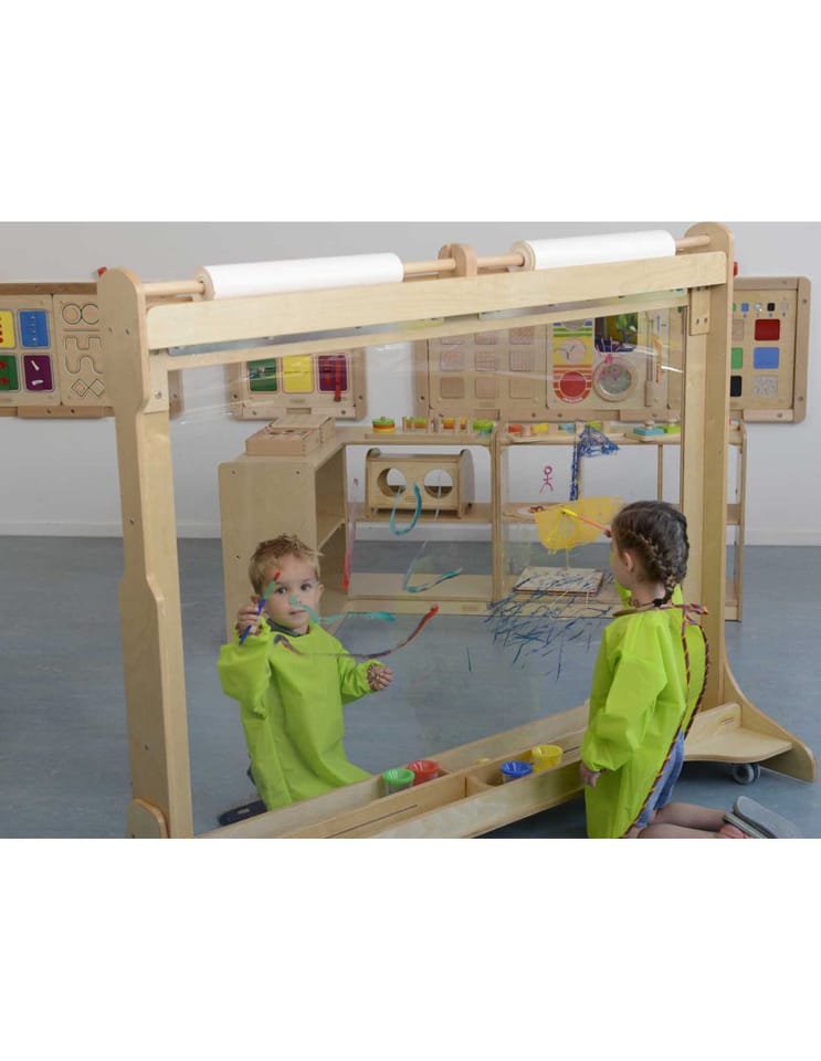 Okienko posiada możliwość zamocowania rolki z papierem, dzięki czemu dziecko może bawić się, malując na papierze, lub na szkle - wedle uznania. Okienko jest na tyle duże, że śmiało bawić może się jednocześnie nawet 4 dzieci.