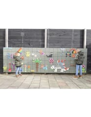 Edukacyjna Tablica Ścienna STEM Masterkidz pozwala na kreatywną zabawę oraz poznawanie świata nauki. Szerokie panele o wymiarach 120x80 cm (wielkość 1 kafelka 20 x 20 cm) posiadają otwory, w które wkładając kolorowe kołeczki, można tworzyć przepiękne wzory. Do tablicy można również zamontować przeróżne pomoce edukacyjne, koła zębate, systemy rur z pompą, oraz inne ciekawe elementy.