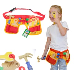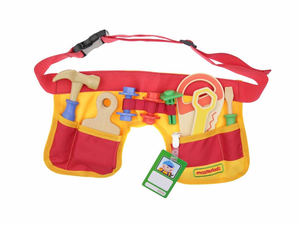 Materiałowy pas, oraz zestaw 12 narzędzi stolarskich od marki MASTERKIDZ. Komplet pozwala na wykonanie wszelkich prac stolarskich, a także zawiera identyfikator pracownika, na którym dziecko może zapisać swoje imię, oraz przykleić zdjęcie. Maluch poczuje się jak prawdziwy fachowiec, który potrafi naprawić każdą usterkę!