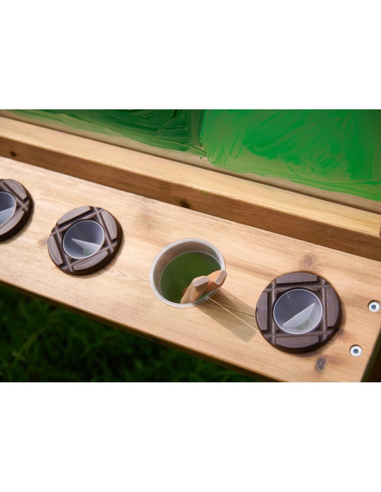 - Zawiera dużą powierzchnię przezroczystego akrylu idealną do malowania.- Specjalne miejsca na farby, naczynia z wodą oraz pędzle .- Wodoodporna konstrukcja, odporność na promieniowanie UV, pleśń i gnicie – idealne do użytku na zewnątrz.- To doskonałe rozwiązanie dla małych artystów, które łączy kreatywność z funkcjonalnością i wygodą!- Powierzchnia malarska ustawiona na wysokości górnej części ciała – idealna dla starszych dzieci