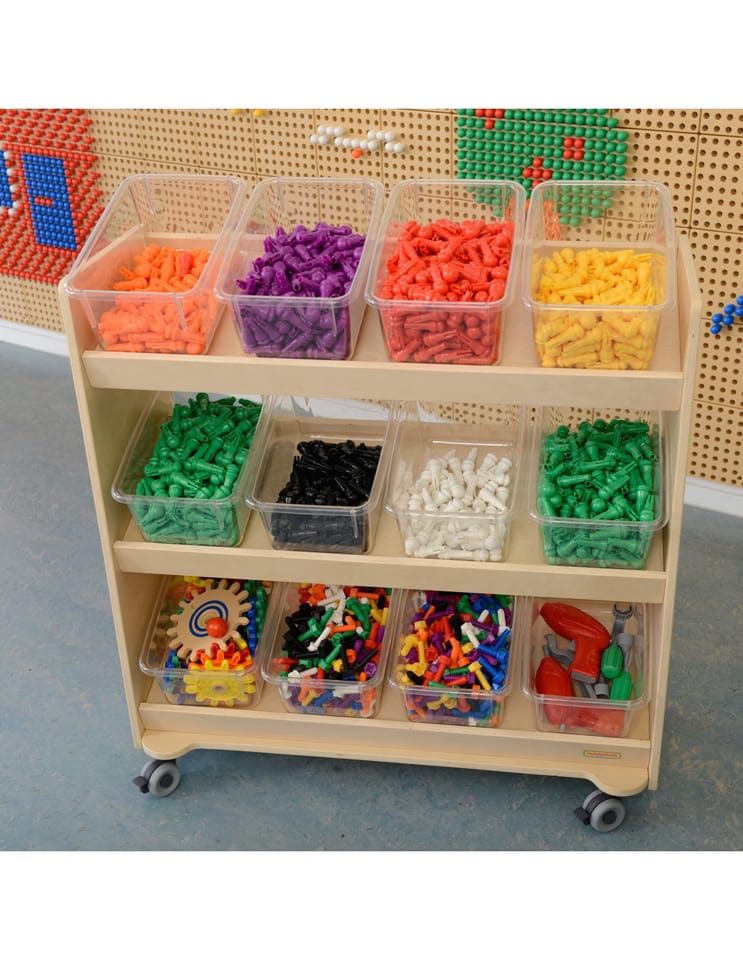 Mobilny regał na kółkach ME29959 to nowoczesny i solidny element wyposażenia każdej sali edukacyjnej. Zaprojektowany z myślą o wygodzie najmłodszych użytkowników, pozwala na łatwe przechowywanie i organizację drobnych oraz średnich elementów, takich jak śrubki, nakrętki czy kołki. Dzięki eleganckiemu wyglądowi i funkcjonalności, idealnie komponuje się z przestrzenią edukacyjną, zachęcając dzieci do samodzielności i kreatywności podczas zajęć.