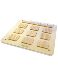 Zabawka składa się z 9 par płytek. Na górze znajdują się małe płytki, które dotyka się najpierw, by poznać fakturę i wzór na płytce, a następnie dziecko ma za zadanie odnaleźć taką samą płytkę pośród 9 dużych.