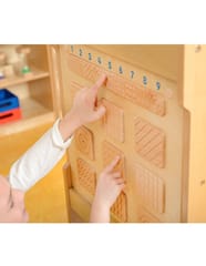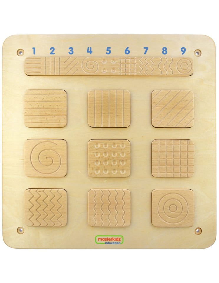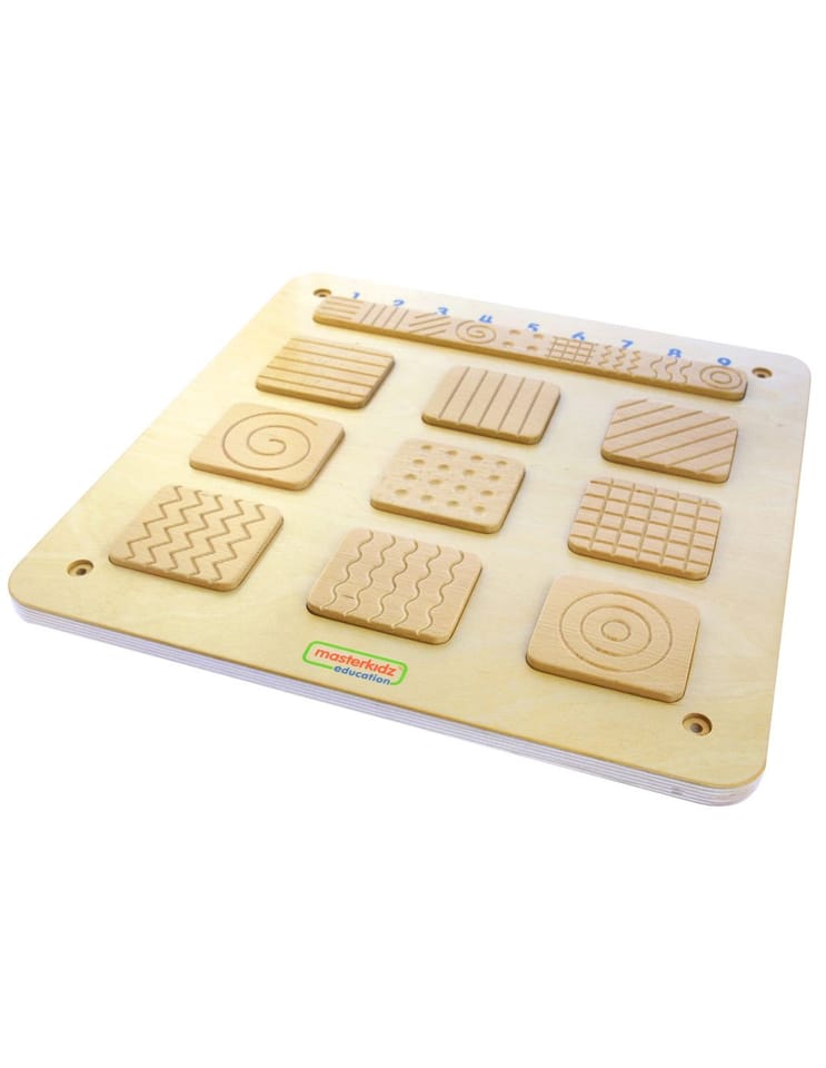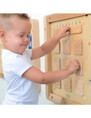 Tablice sensoryczne to świetne zabawki, dzięki którym stymulowane są zmysły maluchów. W przypadku tablicy Rozpoznawanie Faktury, rozwijany jest zmysł dotyku, dzięki czemu później skuteczniej może być wykorzystywany przy poznawaniu otoczenia. Zabawa polega na tym, by z zamkniętymi oczami odnaleźć parę pasujących do siebie fakturą płytek. Zadanie nie jest tak proste, jak może się wydawać, a dziecko musi się bardzo skupić i wysilić zmysły.