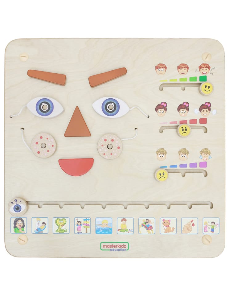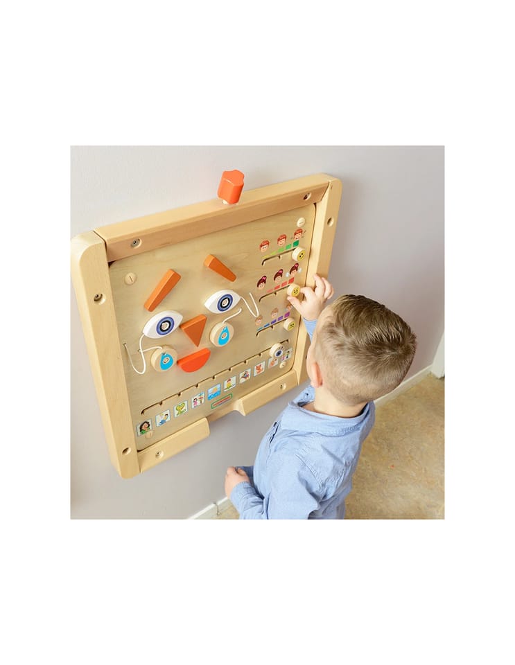 - - Pomaganie dzieciom w identyfikowaniu i opisywaniu emocji jest ważnym pierwszym krokiem w nauce emocji, małe dzieci nie umieją opisać emocji słowami, tablica pozwala im wyrazić swoje emocje lub poznać emocje, których wcześniej nie znali