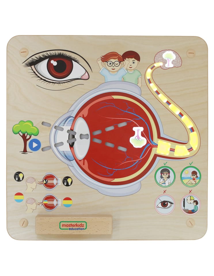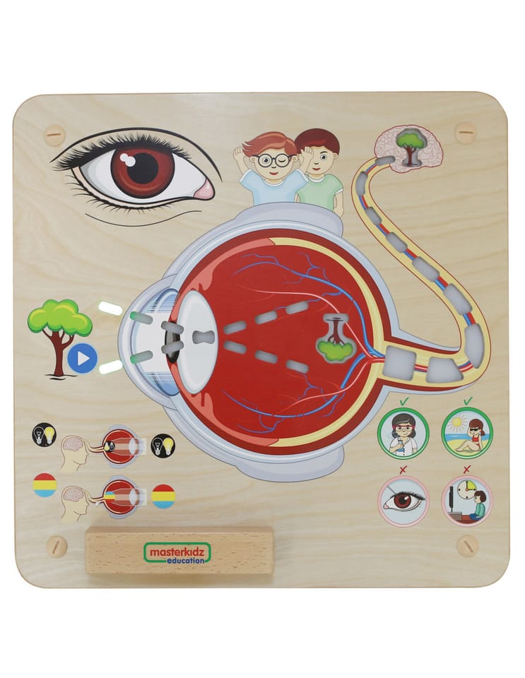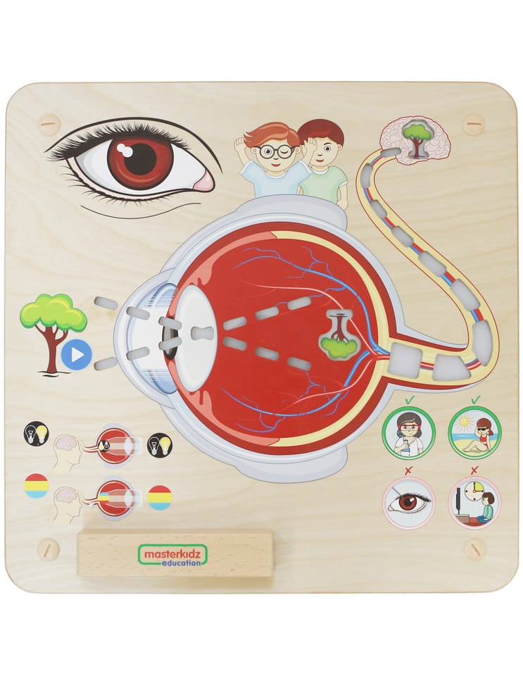 - - tablica wyjaśnia w jaki sposób używamy oczu do zdobywania wiedzy o otaczającym nas świecie, o kolorach, jasności, czy kształtu przedmiotów