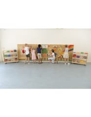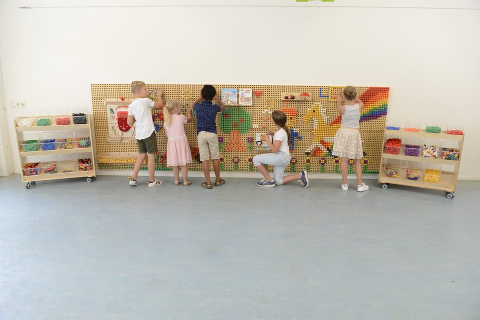 Edukacyjna Tablica Ścienna STEM Masterkidz pozwala na kreatywną zabawę oraz poznawanie świata nauki. Szerokie panele o wymiarach 120x80 cm (wielkość 1 kafelka 20 x 20 cm) posiadają otwory, w które wkładając kolorowe kołeczki, można tworzyć przepiękne wzory. Do tablicy można również zamontować przeróżne pomoce edukacyjne, koła zębate, systemy rur z pompą, oraz inne ciekawe elementy.