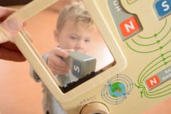 - - Dziecko może bawić się przyciągając magnes do pól magnetycznych o przeciwnych biegunach. Uczy się wtedy podstawowej teorii magnetyzmu. Przyciągać można również nawzajem dwa magnesy. Oczywiście można eksperymentować i próbować przyłożyć do siebie końce o przeciwnych biegunach. Wtedy dziecko zaobserwuje zjawisko odpychania.