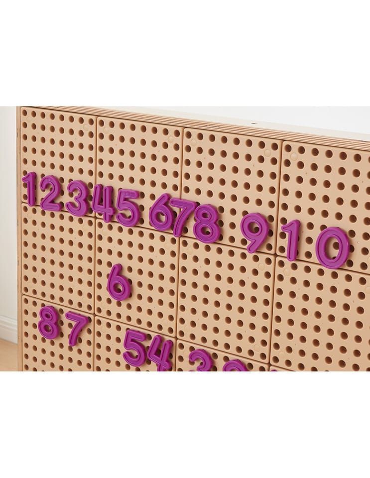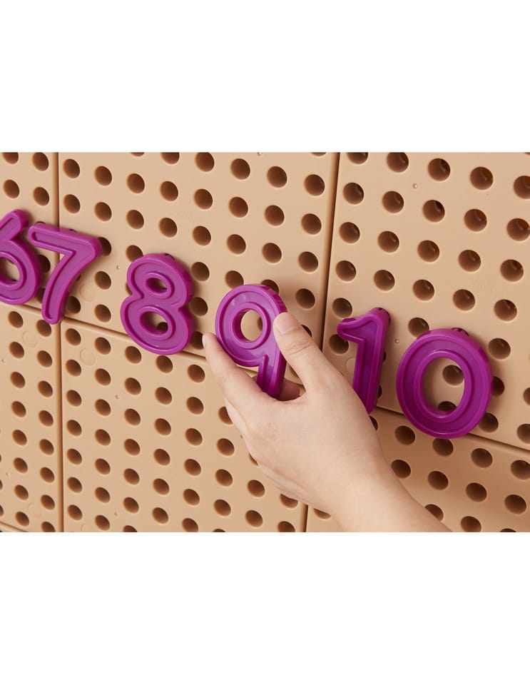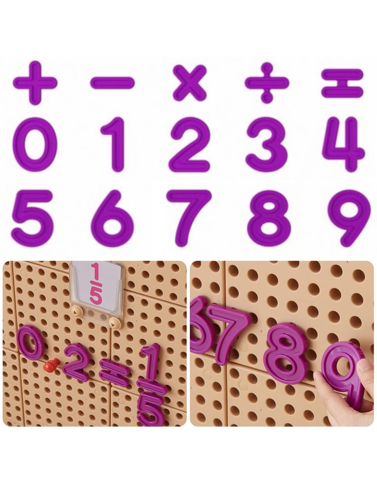 Zestaw Cyferek 82 Elementów Do Nauki Liczenia to komplet, który jest doskonałym narzędziem do nauki matematyki dla dzieci. Zawiera 40 cyfr oraz symbole działań matematycznych i równania, co umożliwia tworzenie prostych działań arytmetycznych. Elementy zestawu są odpowiednio duże, co sprawia, że łatwo je trzymać i dopasowywać, a ich fioletowy kolor przyciąga uwagę. Zestaw doskonale pasuje do ścianek STEM. Pomaga w nauce liczenia, rozumienia liczb i wykonywania podstawowych działań matematycznych, takich jak dodawanie, odejmowanie, mnożenie i dzielenie. To świetne narzędzie do wspierania rozwoju umiejętności matematycznych u młodych uczniów.